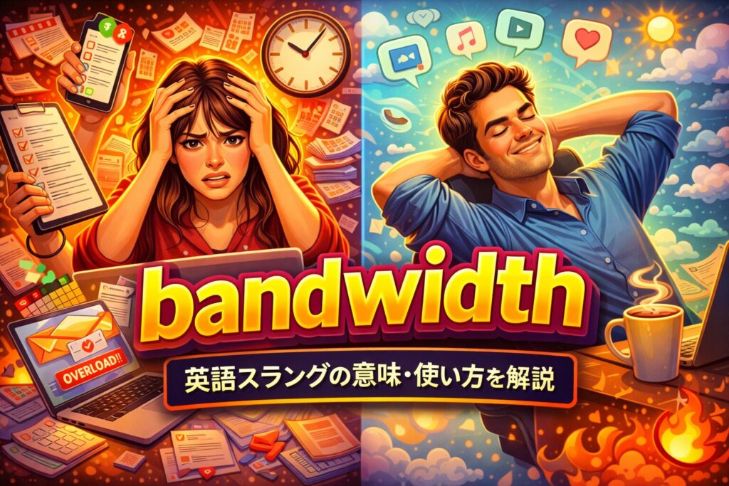 bandwidthは、精神的・時間的な余裕を表す便利なスラングで、ビジネスシーンからSNSまで幅広く使われています。自分の限界を認識し、無理なく伝えるための現代的な表現として覚えておくと役立ちます。
