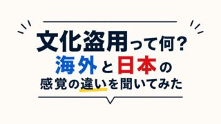 海外カルチャー 【会話形式】文化盗用って何?ダメなこと?海外と日本の感覚の違いを聞いてみた 文化盗用って何?の意味や背景を、アメリカとヨーロッパのゲストとの会話形式で解説。SNSで論争になる理由、海外と日本の感覚の違い、よくある誤解まで分かりやすく紹介します。 2026.04.15 海外カルチャー