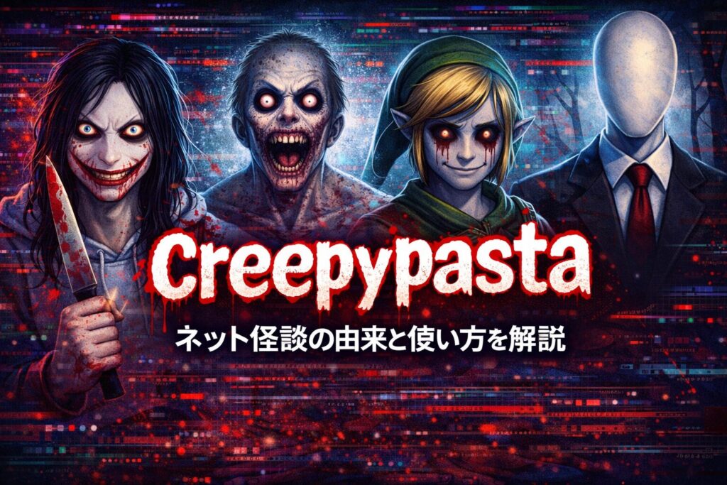 creepypasta は、インターネット上で共有されるホラーストーリーやネット怪談を指す言葉で、copypasta(コピペ)と creepy(不気味な)を組み合わせた造語です。