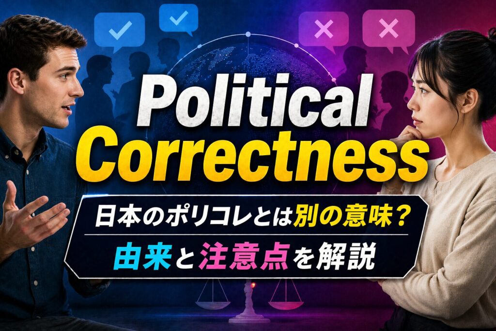 Political Correctness は、(PC・ポリコレ)は「差別的でない言葉や表現を使うべきだという考え方・規範」を指し、日本語では「政治的正しさ」「ポリコレ」と訳されます。