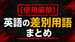 まとめ・比較 【使用厳禁】英語の差別用語まとめ|wetback・chinkなど注意が必要な表現を解説 wetback、chink、gookなど民族・国籍に関わる差別的スラングを11語まとめて解説。映画やSNSで見かける要注意表現の意味・背景・なぜ問題なのかを理解し、誤用を防ぐための知識を身につけられます。 2026.04.16 まとめ・比較スラング