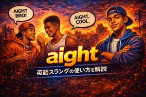 ネット用語 aight の意味とは?ネイティブっぽい返事のニュアンスを解説 aight の意味、使い方、由来をわかりやすく解説します。alright の略語として使われるカジュアルなスラングで、SNSやチャットでの使われ方も紹介。 2026.04.04 スラングネット用語