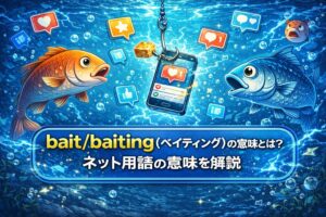 ネット用語 bait/baiting(ベイティング) の意味とは?ネット用語の意味を解説 bait/baiting の意味、使い方、元ネタをわかりやすく解説します。SNSやネットミームでの使われ方も紹介。 2026.03.19 スラングネット用語