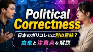 ネット用語 Political Correctness(ポリコレ) とは?「政治的正しさ」が批判語になった経緯・使い方を解説 Political Correctness の意味、使い方、注意点をわかりやすく解説します。略語PCや関連する文化的背景、ポジティブ・ネガティブ両面のニュアンスも紹介。 2026.04.17 スラングネット用語