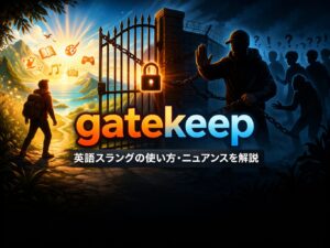 ネット用語 gatekeep の意味とは?英語スラングの使い方・ニュアンスを解説 gatekeep の意味、使い方、元ネタをわかりやすく解説します。SNSやネットミームでの使われ方、ポジティブ・ネガティブなニュアンスも紹介。 2026.03.25 スラングネット用語