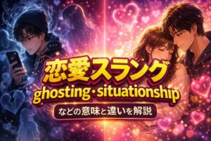 ghosting、orbiting、breadcrumbing、situationshipの違いを解説。現代の恋愛で使われる英語スラングの意味・ニュアンス・使い分けを比較表と例文でわかりやすく紹介します。