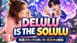 delulu is the solulu の意味、使い方、元ネタをわかりやすく解説します。SNSで流行中のポジティブなスラングのニュアンスや例文も紹介。