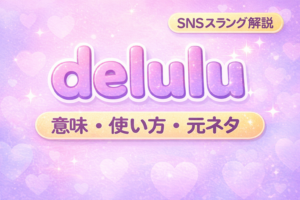 恋愛スラング delulu(デルル)とは?K-POP発の「妄想スラング」が世界を席巻した理由・意味・由来を解説 delulu の意味をわかりやすく解説します。英語スラングとしての使い方、元ネタ、SNSでのニュアンス、例文、似た表現との違いまで初心者向けに紹介します。 2026.03.15 スラングネット用語恋愛スラング