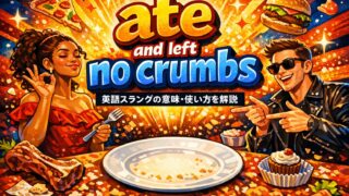 ネット用語 ate and left no crumbs の意味とは?英語スラングの意味・使い方を解説 ate and left no crumbs の意味、使い方、元ネタをわかりやすく解説します。SNSやネットミームでの使われ方も紹介。ポジティブな褒め言葉として若者に人気のスラングです。 2026.03.24 スラングネット用語