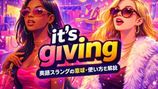 ネット用語 it’s giving の意味とは?英語スラングの意味・使い方を解説 it's giving の意味、使い方、元ネタをわかりやすく解説します。SNSで人気の英語スラングで「〜な雰囲気を出している」という意味。ポジティブにもネガティブにも使える表現です。 2026.03.24 スラングネット用語