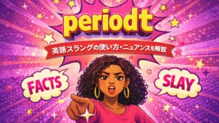 ネット用語 periodt の意味とは?英語スラングの使い方・ニュアンスを解説 periodt の意味、使い方、元ネタをわかりやすく解説します。SNSやネットミームでの使われ方、ポジティブ・ネガティブどちらのニュアンスかも紹介。 2026.03.24 スラングネット用語