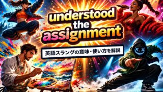 ネット用語 understood the assignment の意味とは?英語スラングの意味・使い方を解説 understood the assignment の意味、使い方、元ネタをわかりやすく解説します。SNSやネットミームでの使われ方や、誰かが期待以上のパフォーマンスを見せた時の褒め言葉としてのニュアンスも紹介。 2026.03.24 スラングネット用語