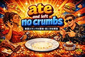 ネット用語 ate and left no crumbs の意味とは?英語スラングの意味・使い方を解説 ate and left no crumbs の意味、使い方、元ネタをわかりやすく解説します。SNSやネットミームでの使われ方も紹介。ポジティブな褒め言葉として若者に人気のスラングです。 2026.03.24 スラングネット用語